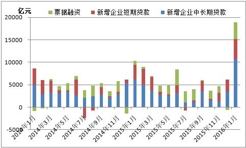 圖二:企業(yè)中長(zhǎng)期貸款、短期貸款、票據(jù)融資增量走勢(shì)