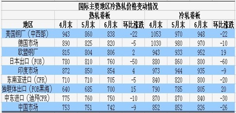 二是近期國(guó)際市場(chǎng)價(jià)格特別是扁平材下滑仍比較明顯,進(jìn)一步削弱我國(guó)鋼材產(chǎn)品出口競(jìng)爭(zhēng)力。5-6月國(guó)際主要地區(qū)冷熱軋價(jià)格持續(xù)下跌,特別是日本地區(qū)內(nèi)需因地震影響下降后,加大出口量,導(dǎo)致出口報(bào)價(jià)大幅下滑,如熱卷出口FOB價(jià)格月環(huán)比下跌6.2%。再加上獨(dú)聯(lián)體、印度等地區(qū)低價(jià)資源沖擊,整體出口市場(chǎng)表現(xiàn)偏弱。
