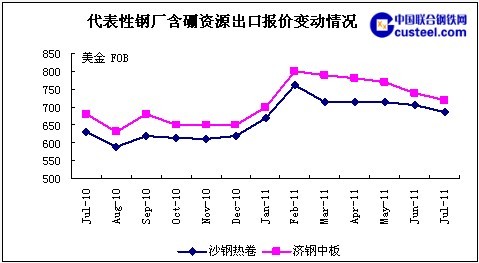 另外國(guó)內(nèi)重點(diǎn)鋼廠(chǎng)下調(diào)內(nèi)銷(xiāo)價(jià)格、三季度國(guó)際礦石協(xié)議價(jià)格下調(diào)、低價(jià)資源的多米諾效應(yīng)等因素也對(duì)出口造成不利影響。